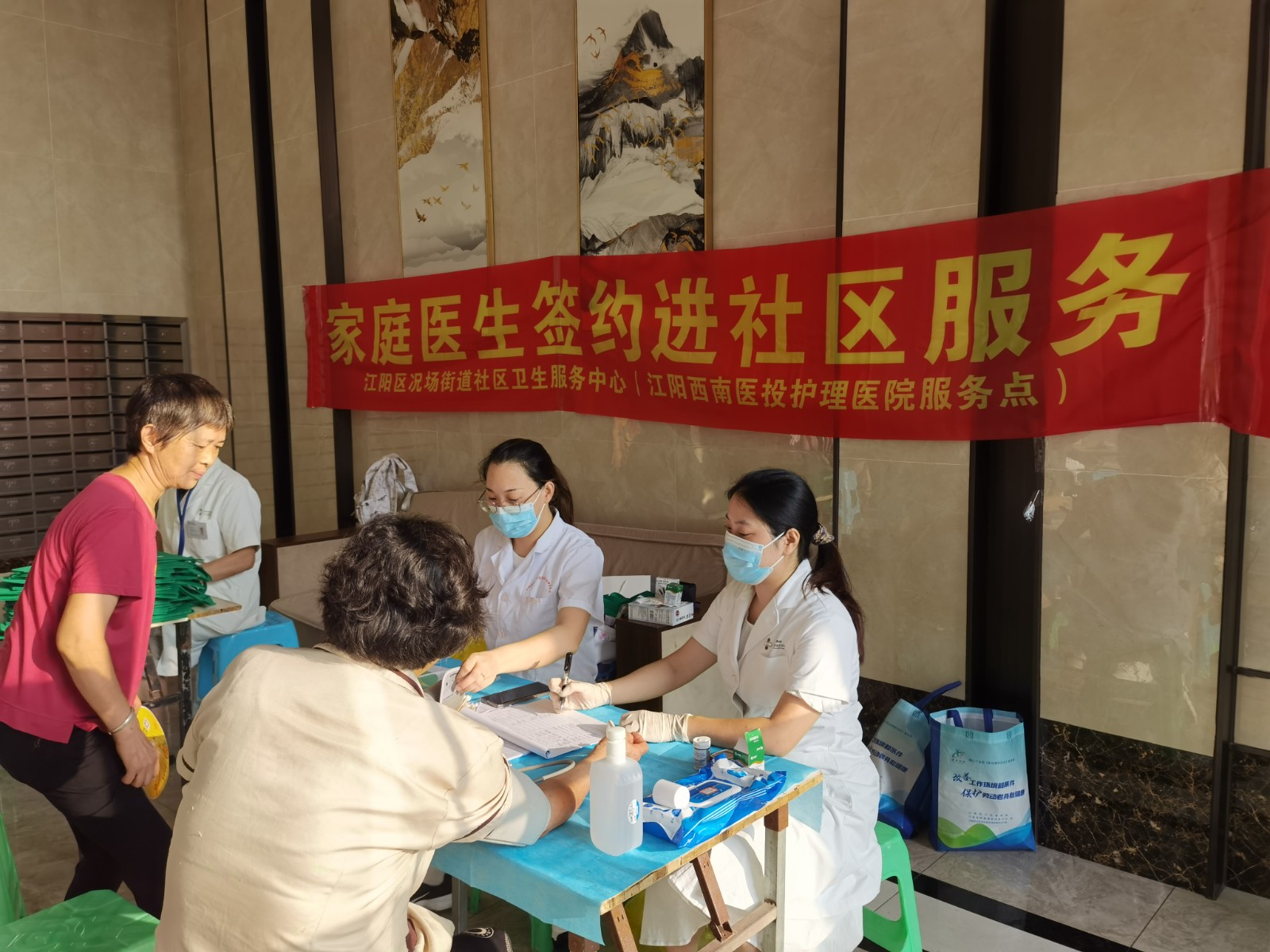 為進(jìn)一步落實(shí)《“健康中國2030”規(guī)劃綱要》,提升社區(qū)居民的健康水平和生活質(zhì)量,8月5日—9日,西南醫(yī)投集團(tuán)旗下江陽西南醫(yī)投護(hù)理醫(yī)院組織專業(yè)家庭醫(yī)生團(tuán)隊(duì)走進(jìn)江陽區(qū)翡翠濱江、陽光國際城、天譽(yù)譽(yù)府、金科博翠灣等多個(gè)小區(qū)開展“家庭醫(yī)生團(tuán)隊(duì)進(jìn)社區(qū)”服務(wù)活動(dòng),為況場街道轄區(qū)300余名居民提供健康管理服務(wù)。
