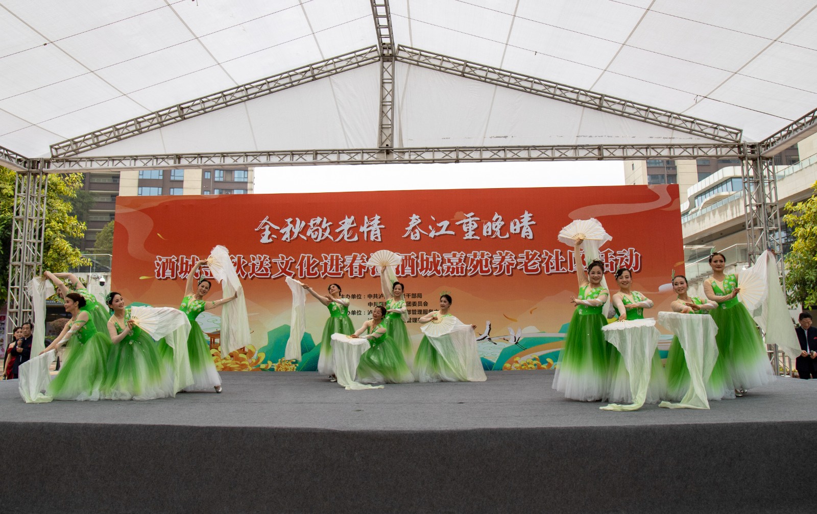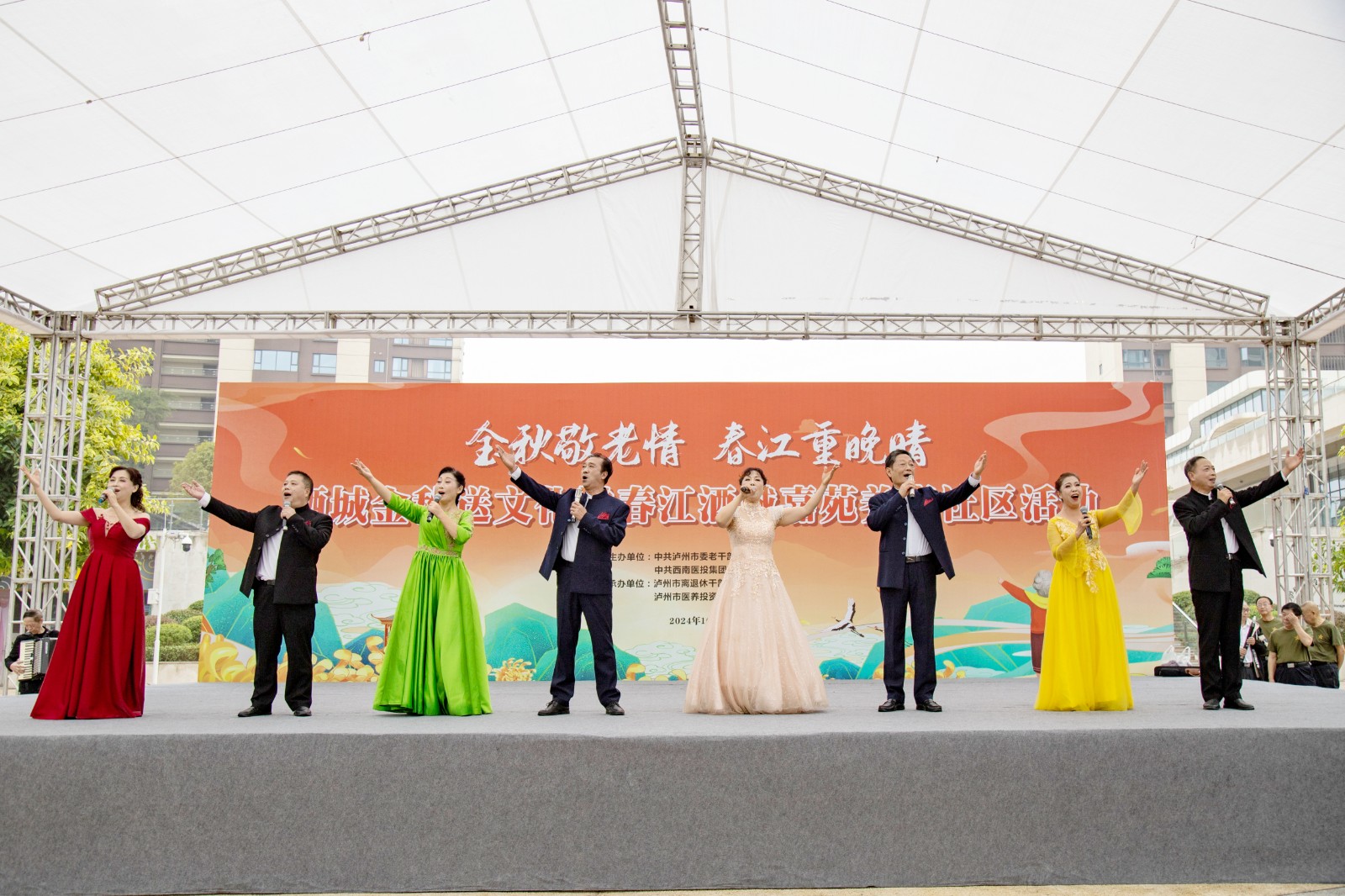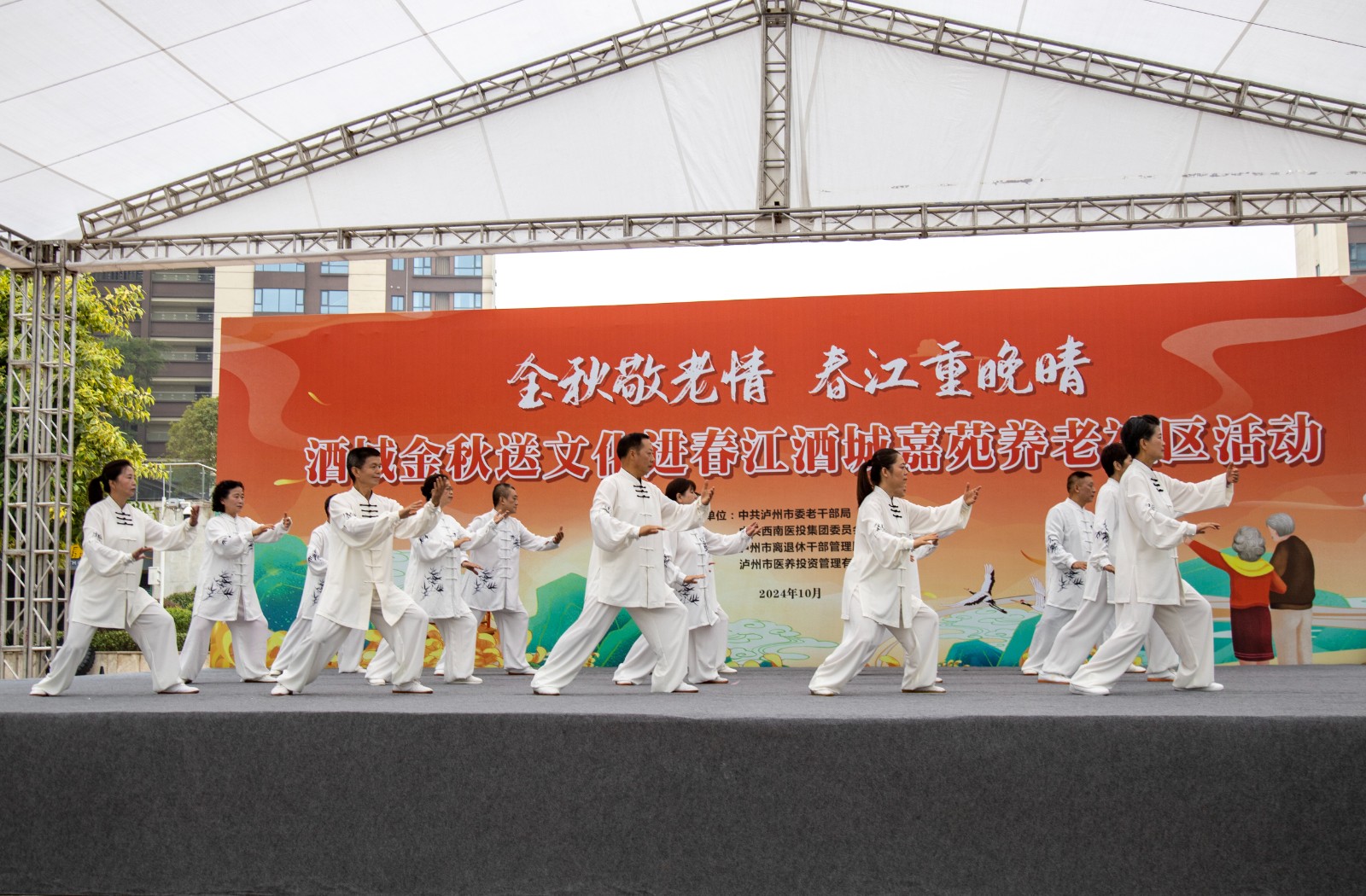 金秋送爽,丹桂飄香。為弘揚(yáng)中華民族尊老愛老的傳統(tǒng)美德,豐富老年朋友的文化生活,增強(qiáng)老同志的獲得感和幸福感,10月10日,由瀘州市委老干部局與西南醫(yī)投集團(tuán)聯(lián)合舉辦的“金秋敬老情·春江重晚晴”酒城金秋送文化活動(dòng)在春江酒城嘉苑養(yǎng)老社區(qū)舉行,為社區(qū)老年朋友獻(xiàn)上了一場(chǎng)文化盛宴。市委組織部副部長(zhǎng)、老干部局局長(zhǎng)唐雯,瀘州發(fā)展控股集團(tuán)副總經(jīng)理、西南醫(yī)投集團(tuán)黨委書記、董事長(zhǎng)林健出席活動(dòng)。